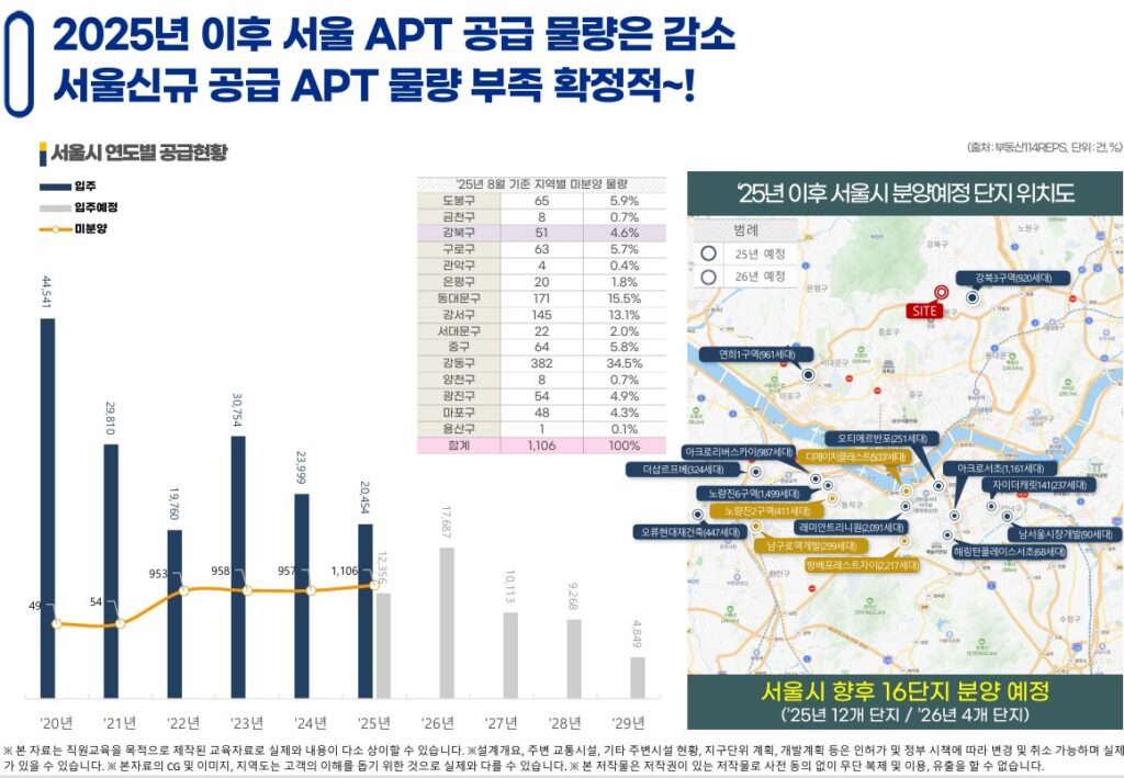 특히 서울 내 신축 공급이 줄어드는 상황에서, 이런 조건을 갖춘 단지는 중장기적으로도 충분한 경쟁력을 가집니다.