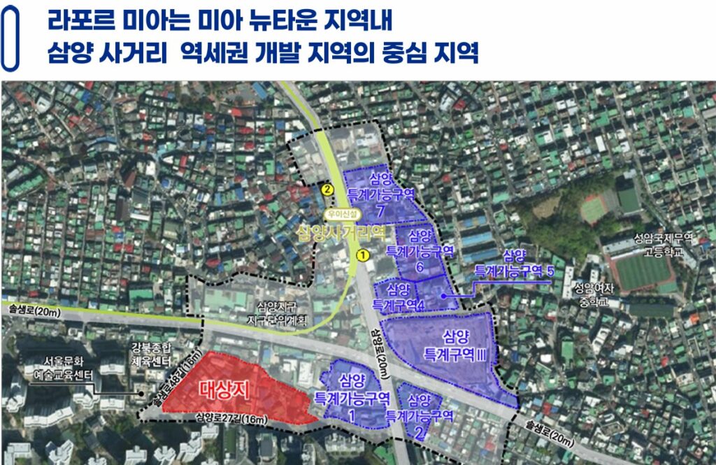 라포르 미아 더퍼스트는 삼양사거리역 초역세권이라는 확실한 입지 위에, 신축 아파트라는 희소성을 더한 단지입니다.